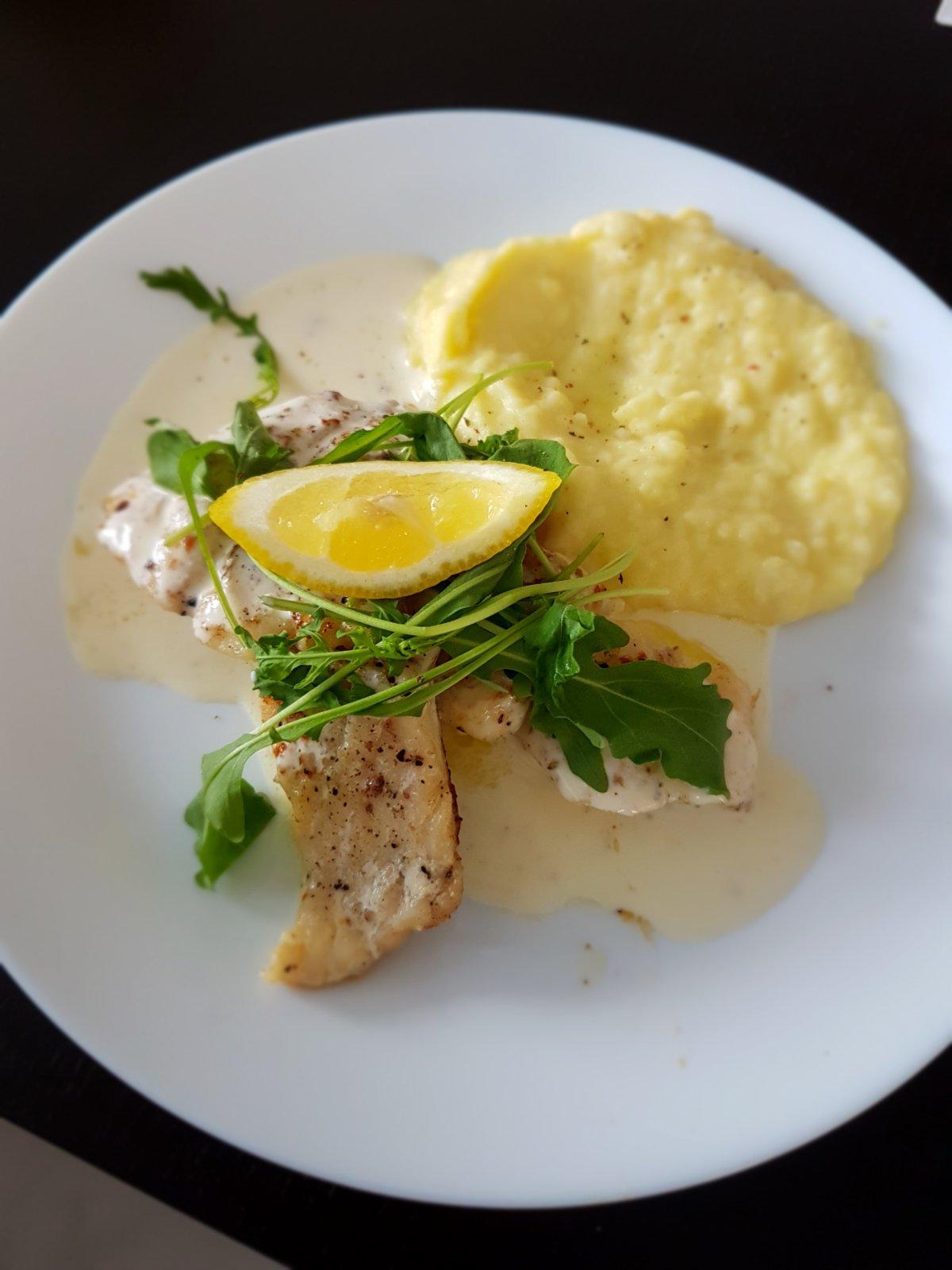U nas dnes treska so zemiakovym pyre s topinamburom a smotanovou omackou
