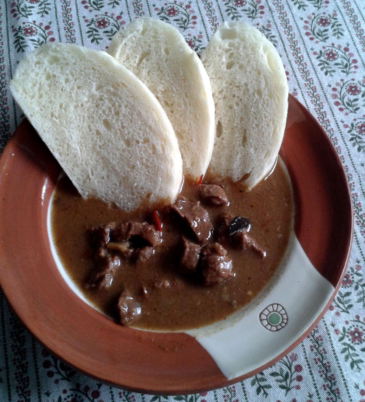hovädzí guláš na sušených dubákoch, domáca knedľa. gulášik uvarený v tlakáči za pol hodinku, medzitým naparené knedle, 2x prebalené, nakojené a uspaté dieťatko 😎 dneska to vyšlo priam rozprávkovo 😀