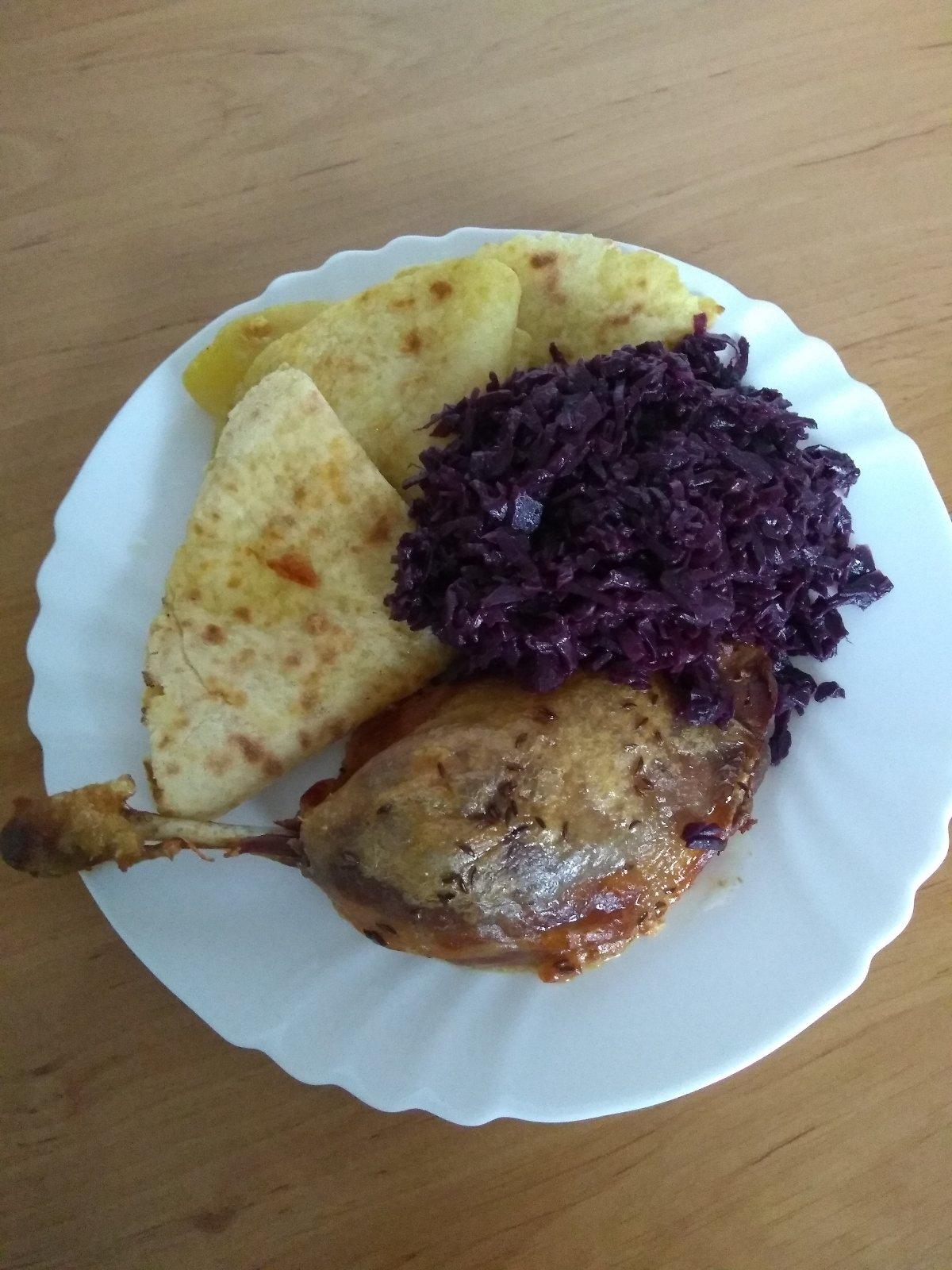 My dnes pecena kacka, kuraci vyvar s pecenovymi haluskami a puncova torta.
