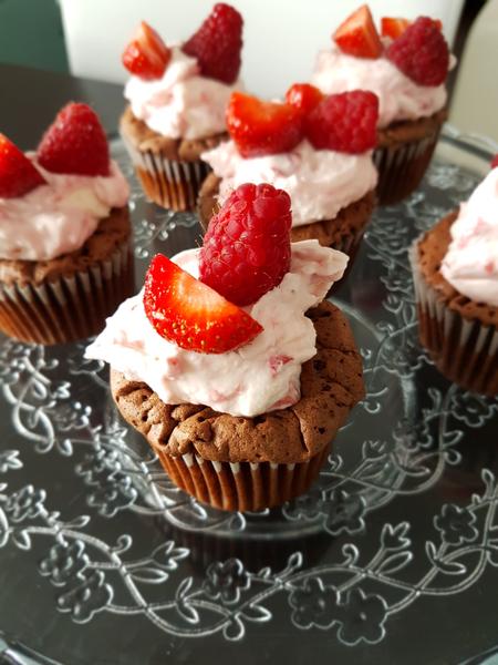 Cokoladove mufiny s jahodovou penou