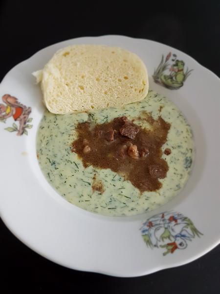slepačia polievka z nedele, ako vždy 😀 😀 a knedľa s mäskom a omáčkou 🙂