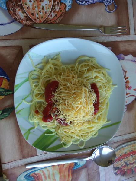 tvarohovo-kakaové cestoviny a sladkú fazuľovú polievku ešte z nedele 🙂