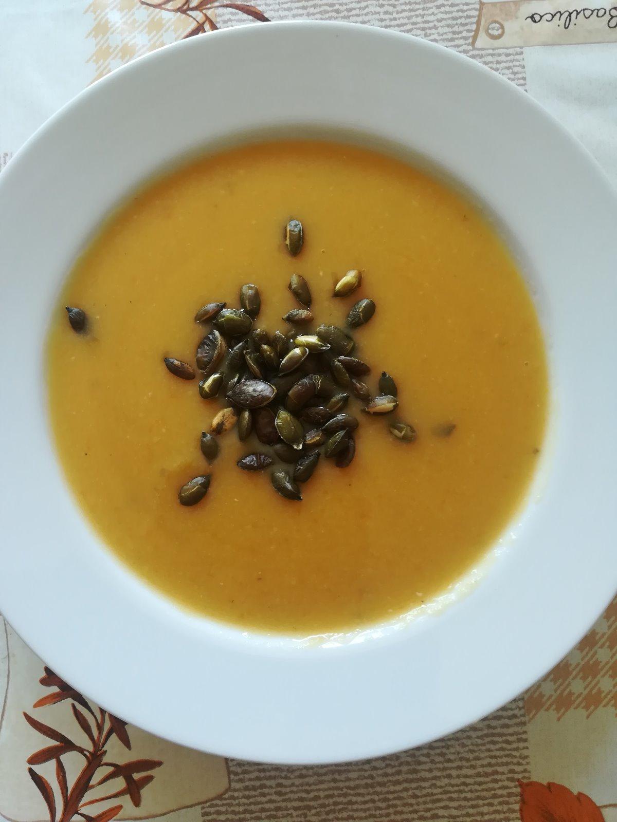 Dnes tekvicová kyslá polievka a zemiakovo-cuketové placky...manželovi opečiem klobásku, on nieje tekvicový, ale mi s malým 🤗 mňaaam