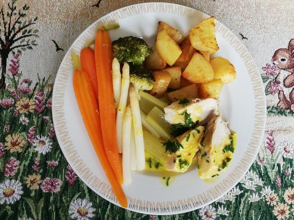 Dnes teľací steak so špargľou a domácou majonézou 🙂