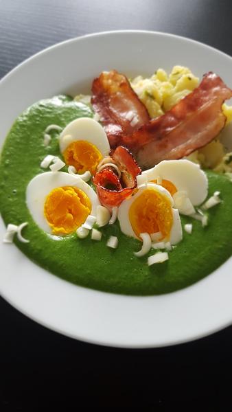 Spenatovy privarok varene zemiaky klobáska 👩🍳🥗🍳🍴🍽🥄🔪