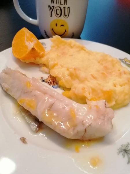 Morský ostriež s mandarinkami a pyré s mrkvou 🐟