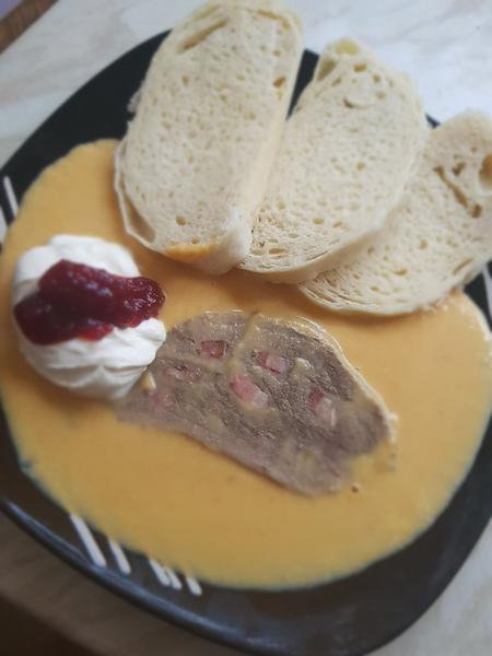 mliekovu hribovu polievku a zemiakove placky plnene maskom a zeleninou.
