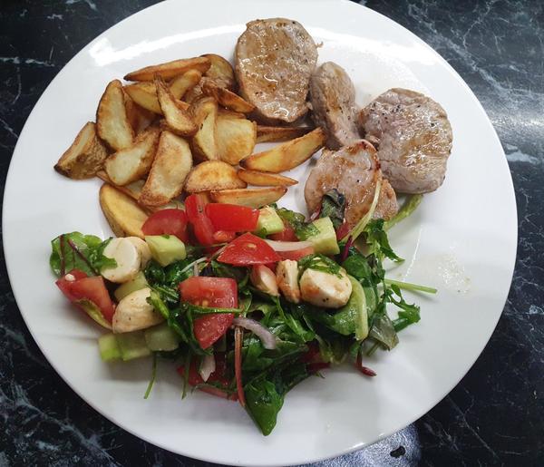 Dnes si ideme spravit na obed grilovany hermelin so zeleninovym salatom a polievku mam este zo vcera, varila som kyslu zemiakovu.