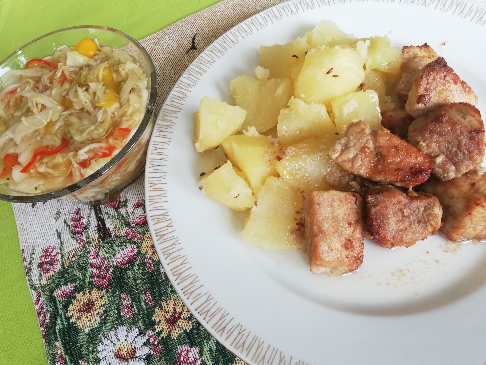 dnes placky s maskom, posypane syrom a zeleninovy salatik 🙂