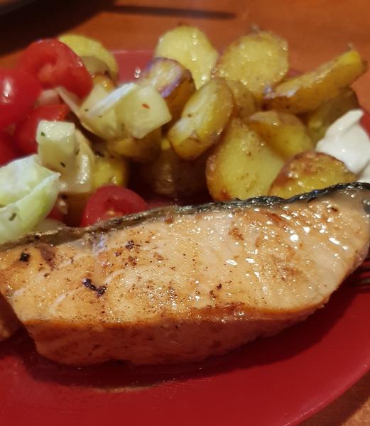 zapecene kare so sampionmi a sladkou smotanou.varene zemiaky