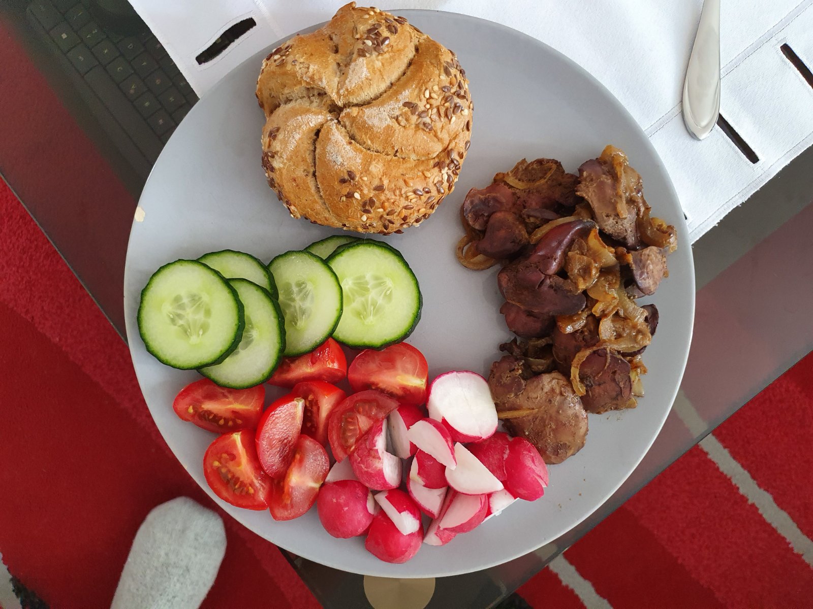 Bratislavské rizoto so syrom, tvarohový strúhaný koláč, na večeru mega semiackovy kváskový chlebík s maslom a zeleninou