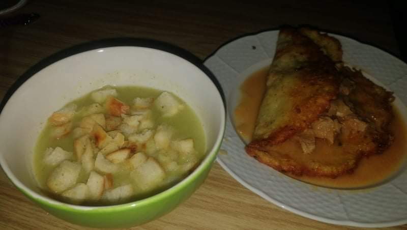 Dojedacky z nedele skoncili. Zeleninova polievka a rolada z panenky.