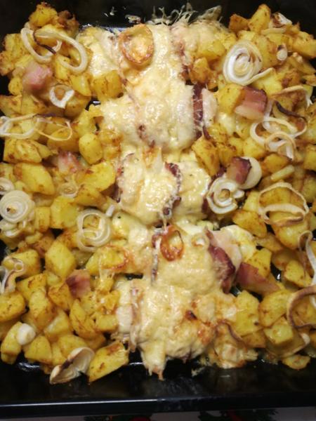 Rezancovu polievku a tieto kuracie prsia . Len som vopred predvarila zemiaky , zmiešala ich s korením na americké zemiaky a navrch kolieska cibule a poliala ešte všetko olivovým olejom bez papiera na pečenie .