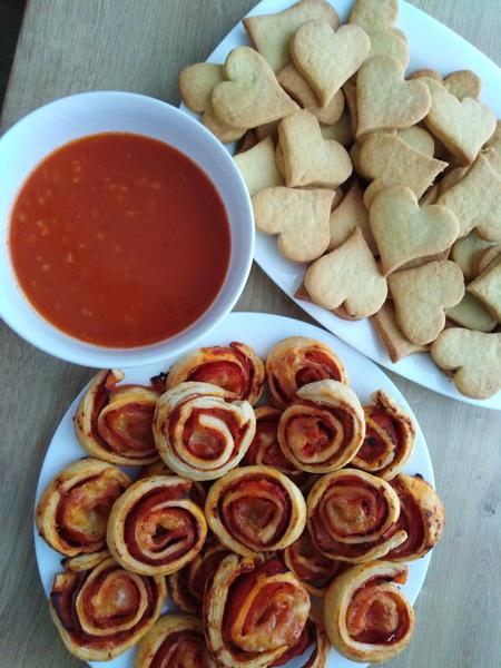 Synovi na želanie: rajčinová polievka s ovsenými vločkami, pizzové slimáky a dánske maslové sušienky.