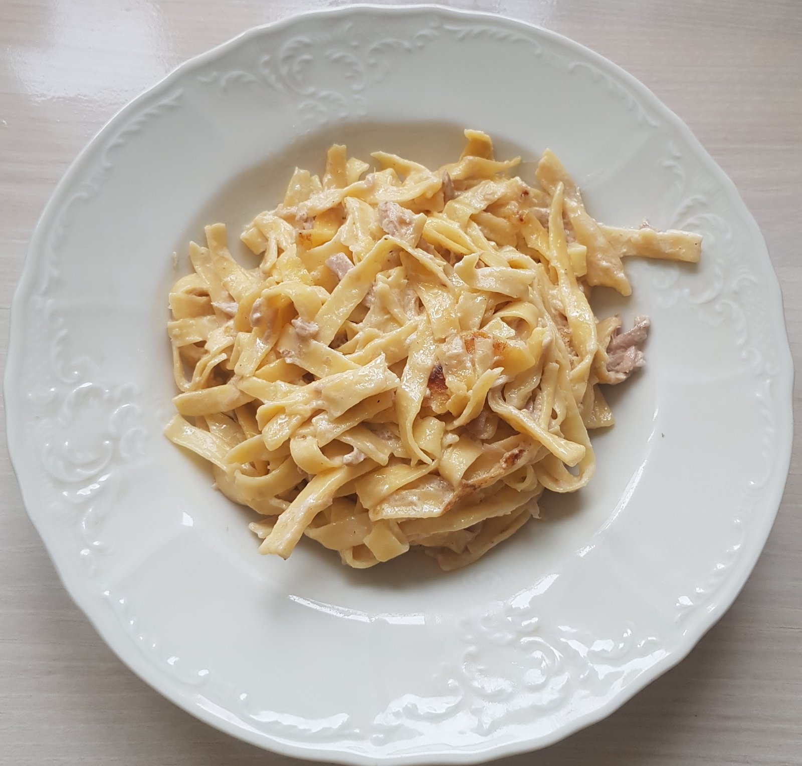 Domáce tekvicové cestoviny s tuniakom a pre nás baby aj so šampiňónmi 🍲
