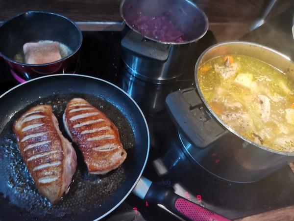 Kura na smotane s kolienkami,zo zvyskov vyvar s rezancami😊