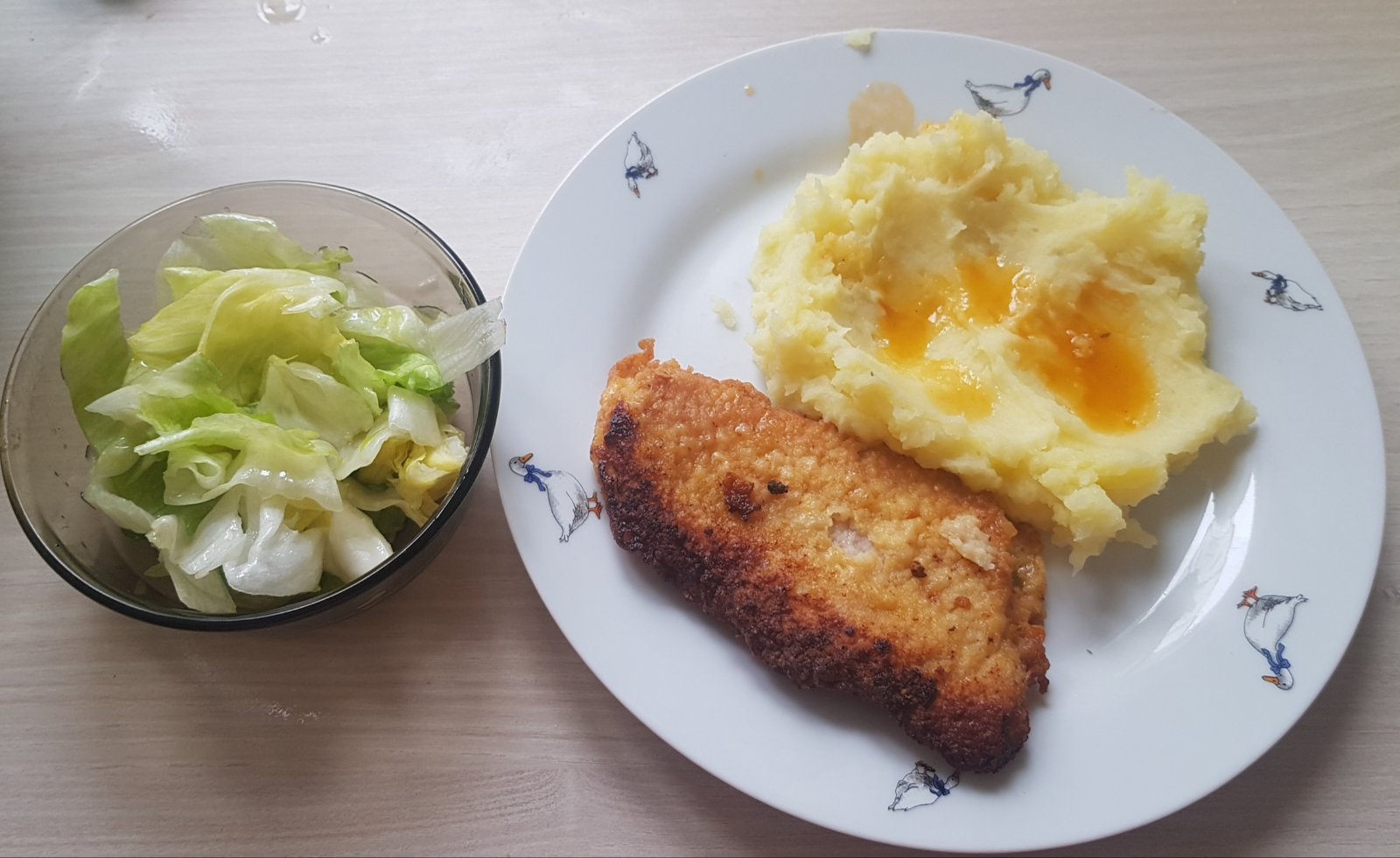 klasicky pondelok, dojedame po nedeli 🙂 mali sme slepaciu polievku a vyprazane spizy s opekanymi zemiacikmy + zeleninovy salat.