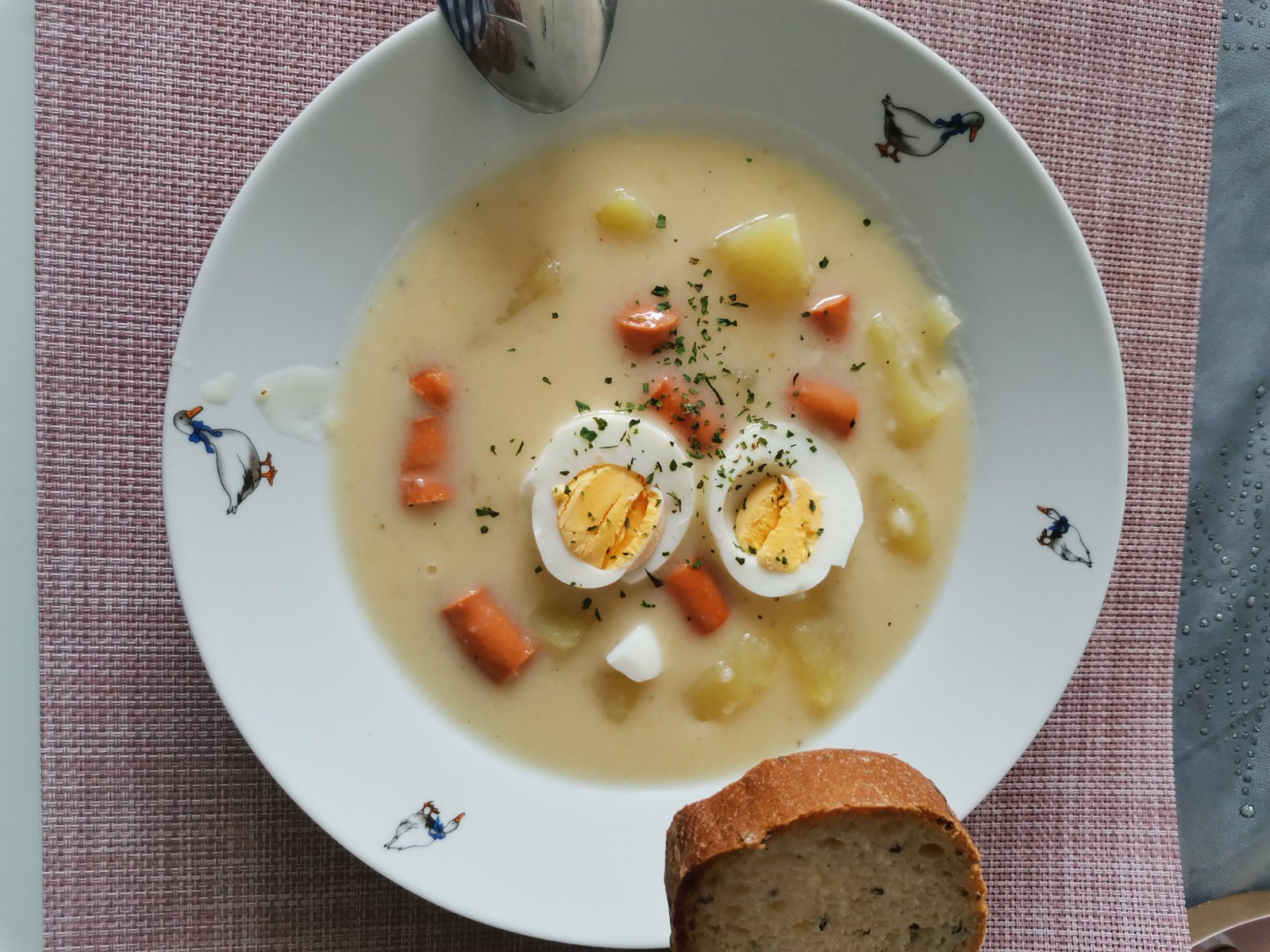 Zemiaková omáčka s parkom a vajíčkom 😂