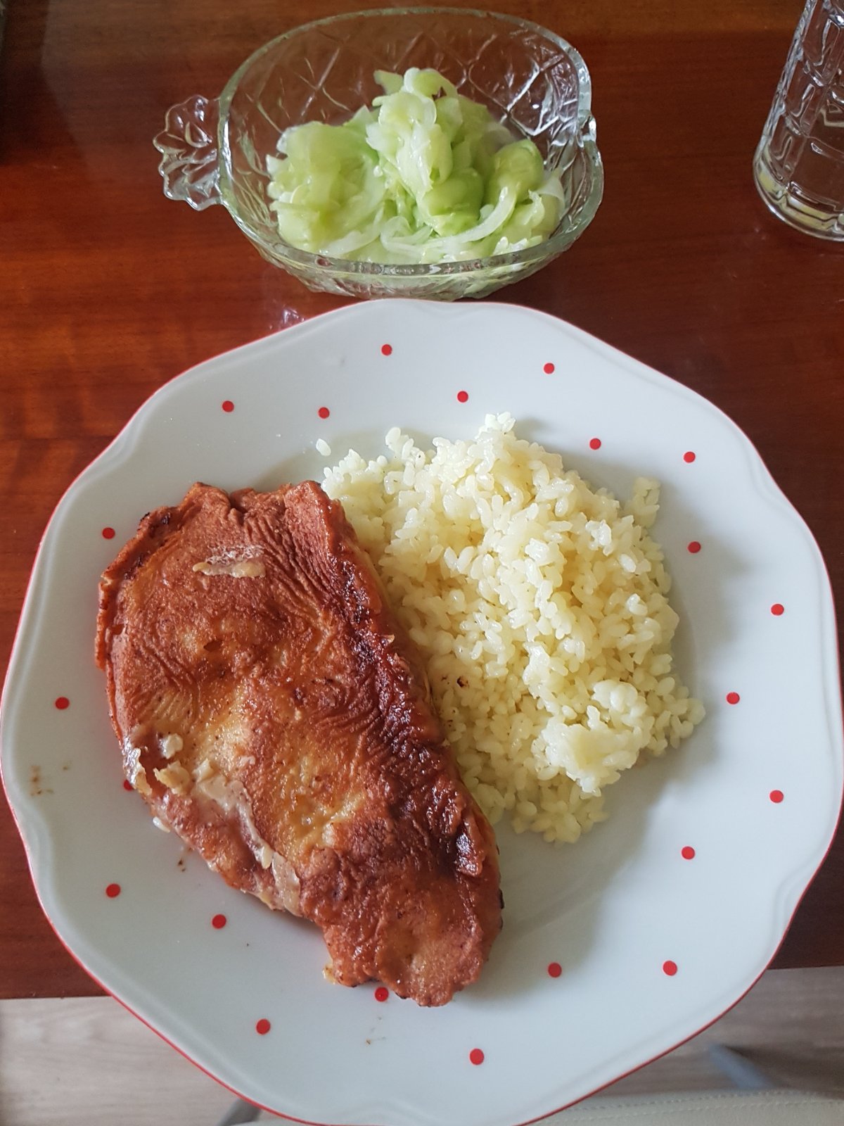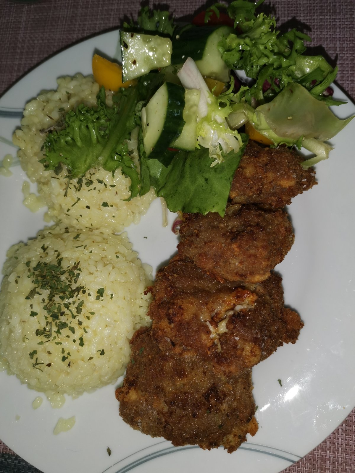dnes sme robili fasirky a k tomu zemiakovu kasu, zajtra mam v plane robit rizotko so zeleninou a uhorkovy salat 🙂