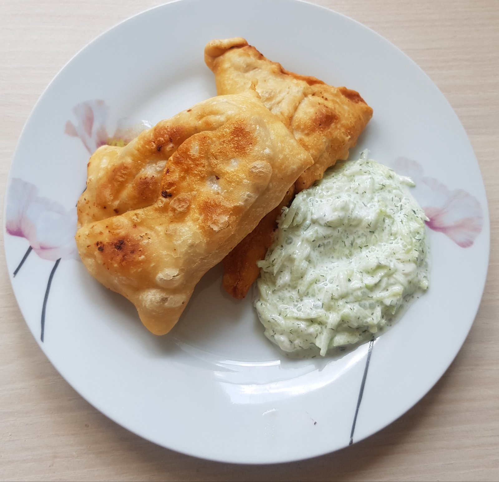 Zo včera zostala šalátovka a smažila som samosy s raitou 👌🏽