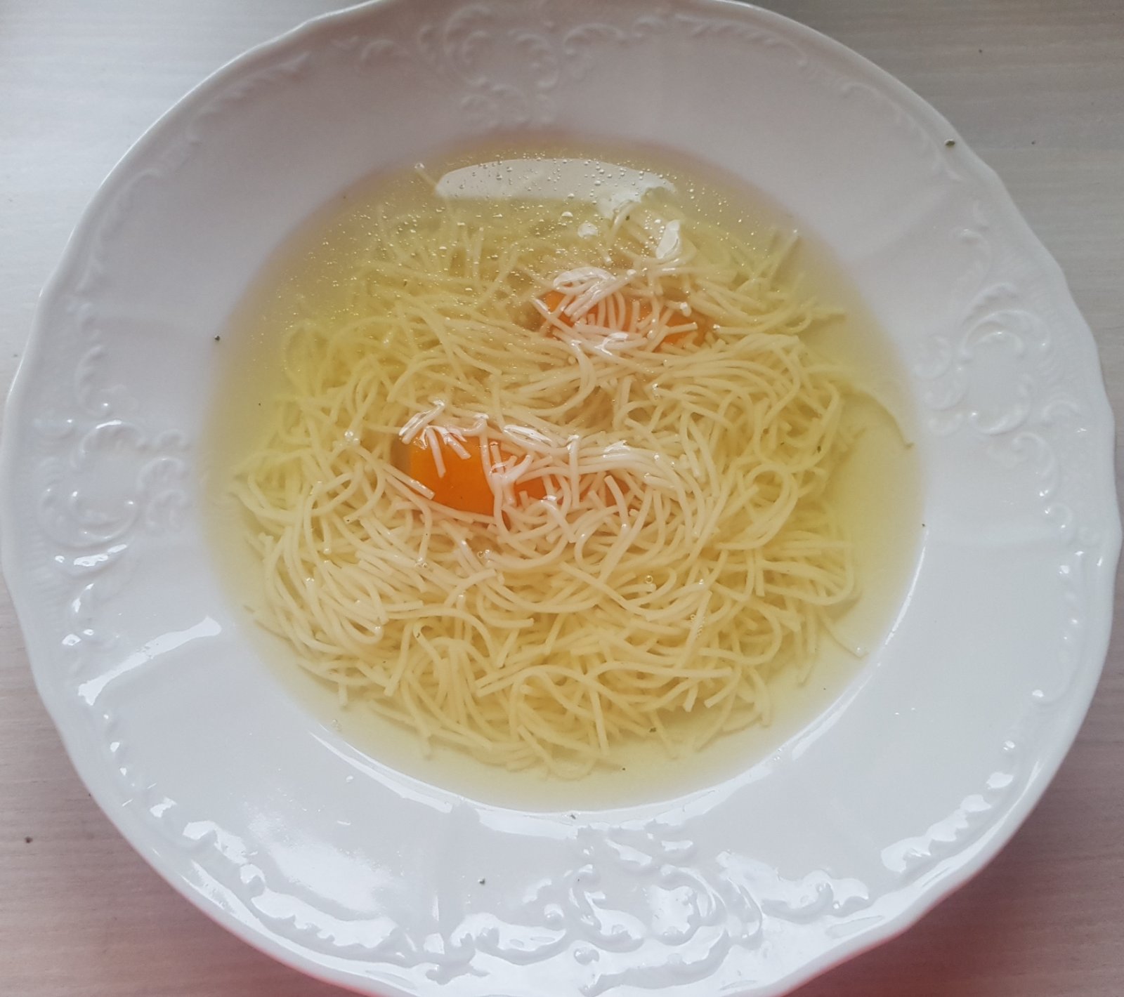 Dnes bol hovädzí vývar, obrátené rezne s ryžou, uhorkový šalát