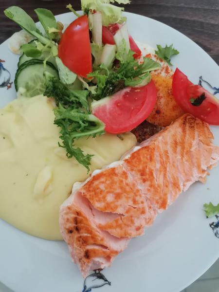 Losos s roznou zeleninou taky mix salatovy plus rajcina por uhorka cuketa susene paradajky pokvapkat citronom koreniny rozne mnam 🤪