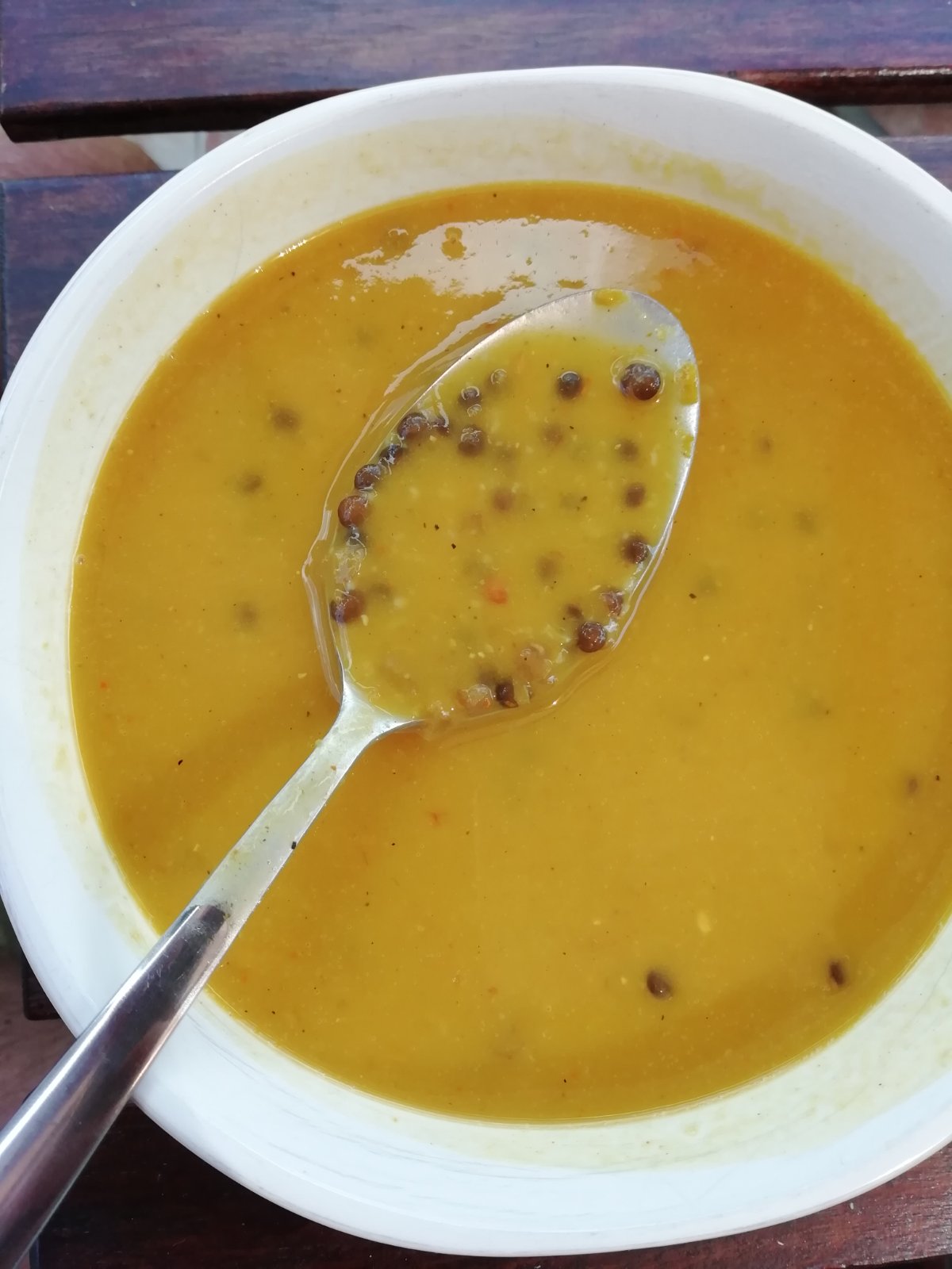 Polievka a là "upratujem", čiže zbytky co som našla - kúsok hokaida, kúsok batatu a mrkvy, cibuľa, cesnak, trocha vlociek, rozmixovať, pridať varenú čiernu šošovicu. Neviem prečo, ale vždy takéto vymýšľance majú u muža najväčší úspech. Druhé boli tuniakove fašírky so zemiakmi. Dcéra (12r.) upiekla bábovku.