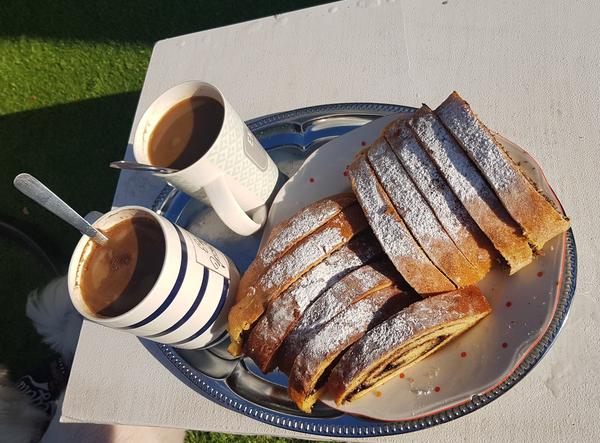 Samosy 🥟 s jogurtovo-bylinkovým dresingom a jablkový koláč s posýpkou 🍎🥧