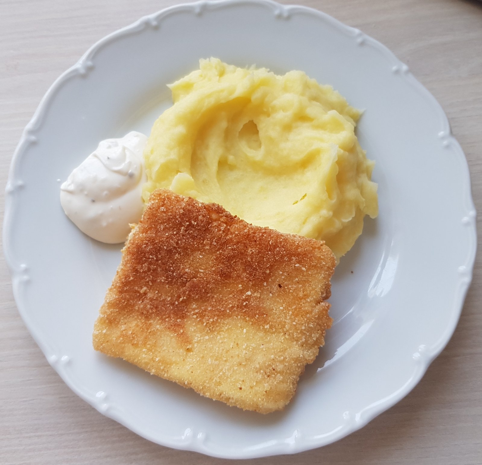 Kuracie v jogurtovo-cesnakovom cestíčku, zemiakové pyré, rajcinovo cibuľovy šalát.