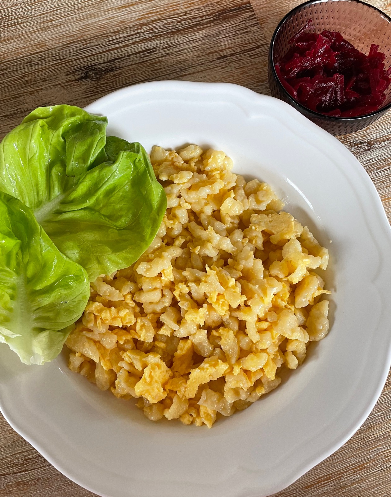 Vajickove nocky s cviklou alebo hlavkovym salatom s nalevom