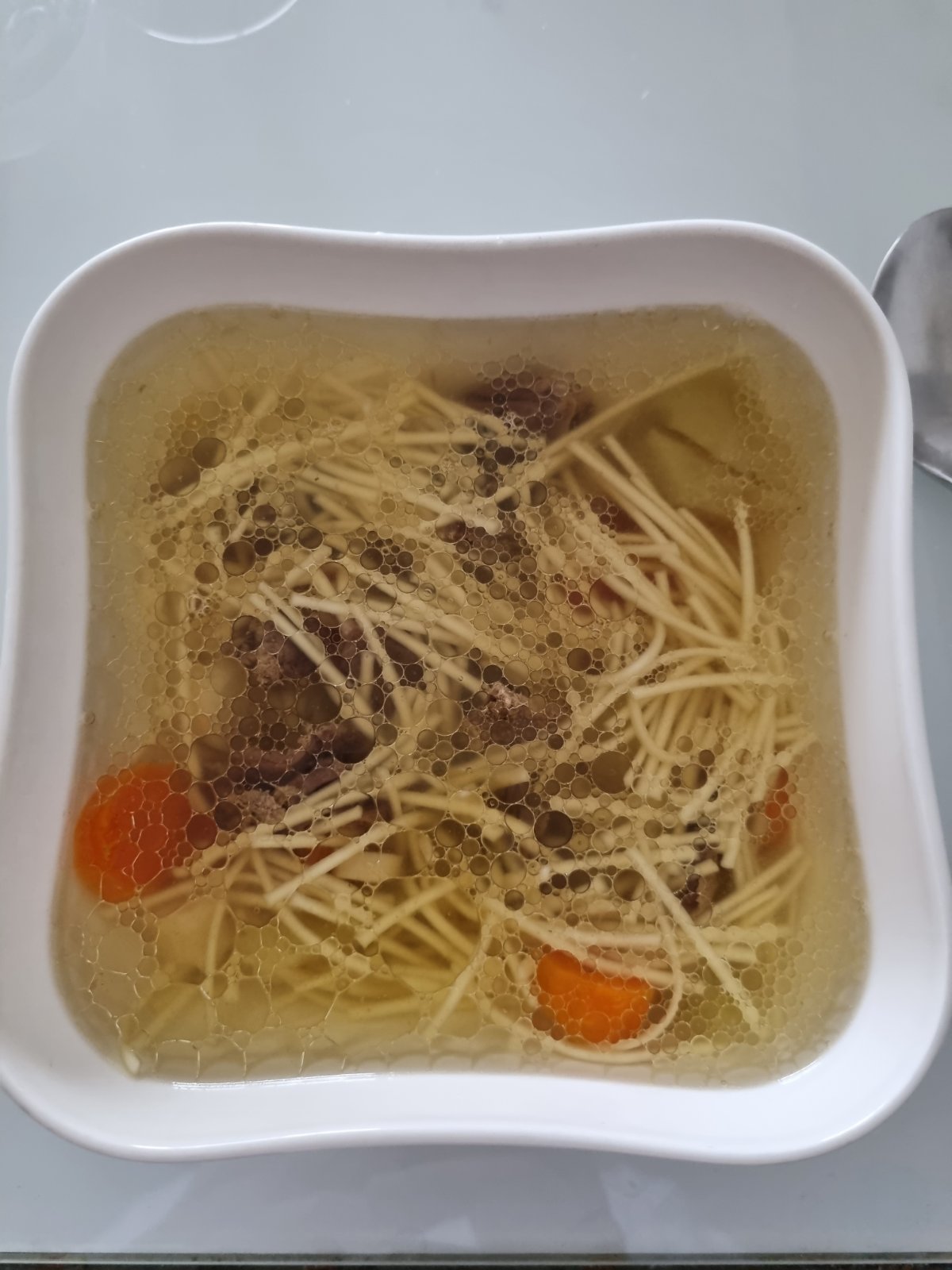 Vcera na obed koprovka s vajickom a fasirkou, polievka dojedacka- kapustova rajcinova s masom a vecer okrem silvestrovskych mis aj plneny zapeceny chleba- sedliacke fondue... dnes pecena kacka, kapusta a knedla, kuraci vyvar. Zajtra neviem 🤦‍♀️