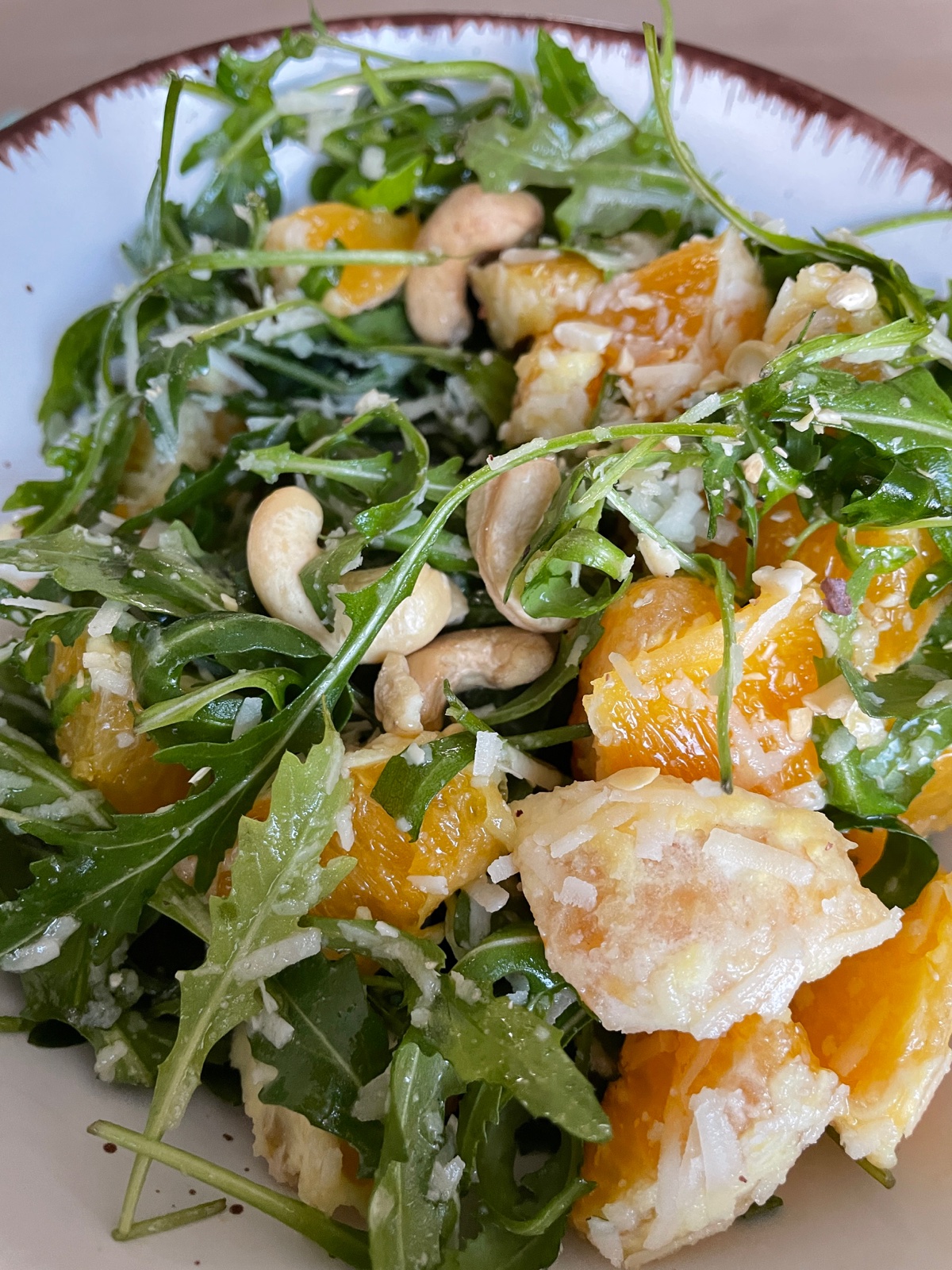 @ajsha123 rukola, pomaranč, olivový olej, parmezán a kešu ☺️