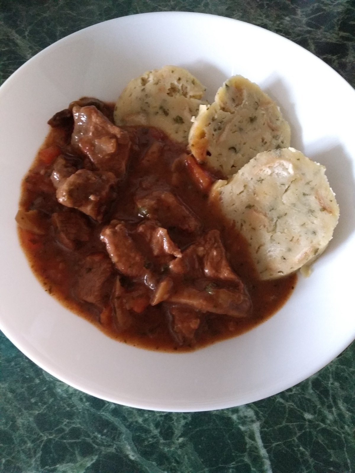 Dnes som robila jeleni guláš s varenou hrnčekovou knedľou
