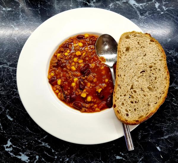 @vladik66 spenim na masti 1 cibulku a 1 cesnak. Poprazim ale len do sklovita. Pridam mlete hov. mäso, to dobre orestujem. Pridam cerstvy tymian (ten musi byt, ak neni cerstvy, tak aspon suseny). Podlejem 2 dc cervenym vinom, poprazim, poredukujem. Osolim, okorenim, pridam cilli papricku. Pridam nakrajane 2-3 rajciny na kocky a rajcinove pyre (nie pretlak!). Povarim, kym nie je maso na 80% hotovo. Potom pridam kukuricu z konzervy a fazulu. Ja davam taku fazulu v chilli omacke, aj so stavou. To este doda chut.