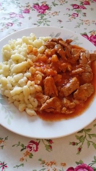 dnes perkelt s haluskami a zeleninovu polievku s krupicovymi haluskami 🙂 Same halusky 😀