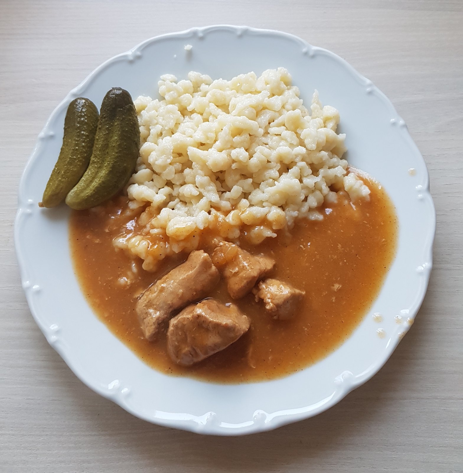dnes perkelt s haluskami a zeleninovu polievku s krupicovymi haluskami 🙂 Same halusky 😀