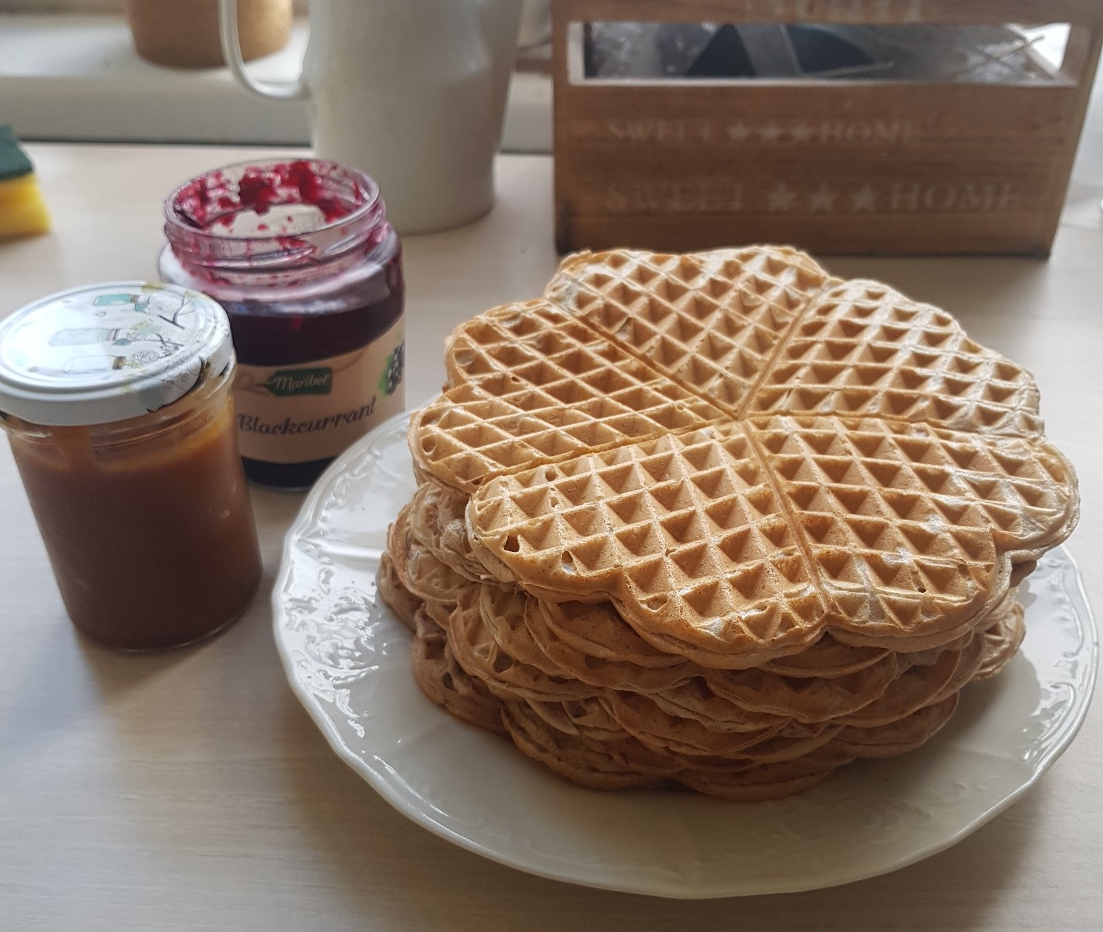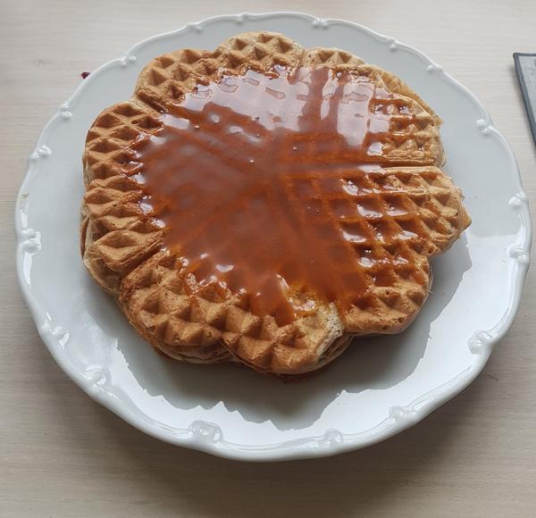 Dnes sladký obed: kváskové wafle s džemom a slaným karamelom 🥞