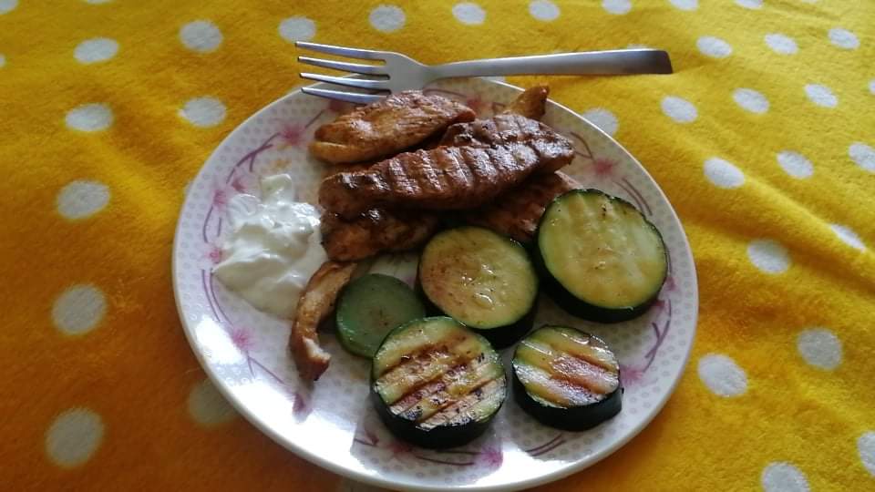 Cukinovy privarok,dusene zemiaky,volske oko