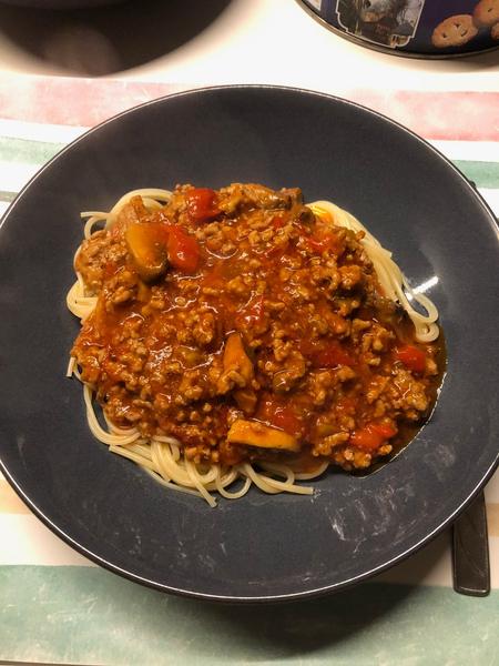 Včera som robila polievku z nastrúhanej zeleniny (mrkva, kaleráb, zeler) s krupicovými haluškami. Dnes varím lasagne s omáčkou s mletým hovädzím mäsom, koreňovou zeleninou a rajčinovým pyré.