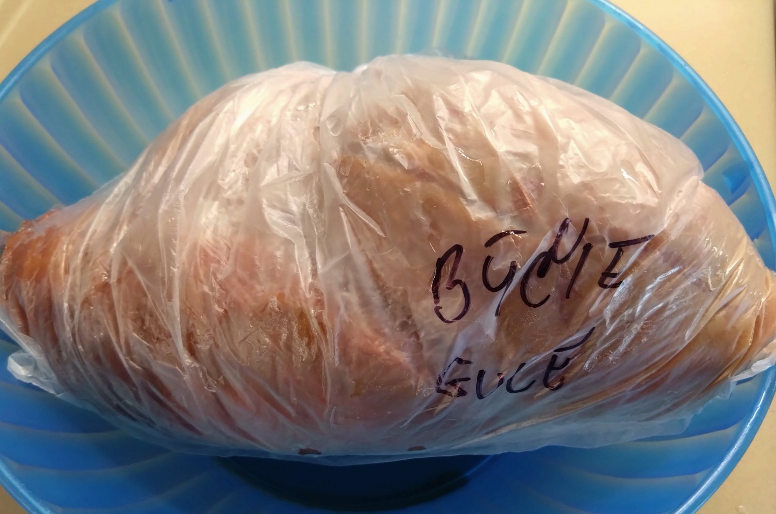 Gulášová polievka,kuracie prsia v cestíčku a zemiaky.