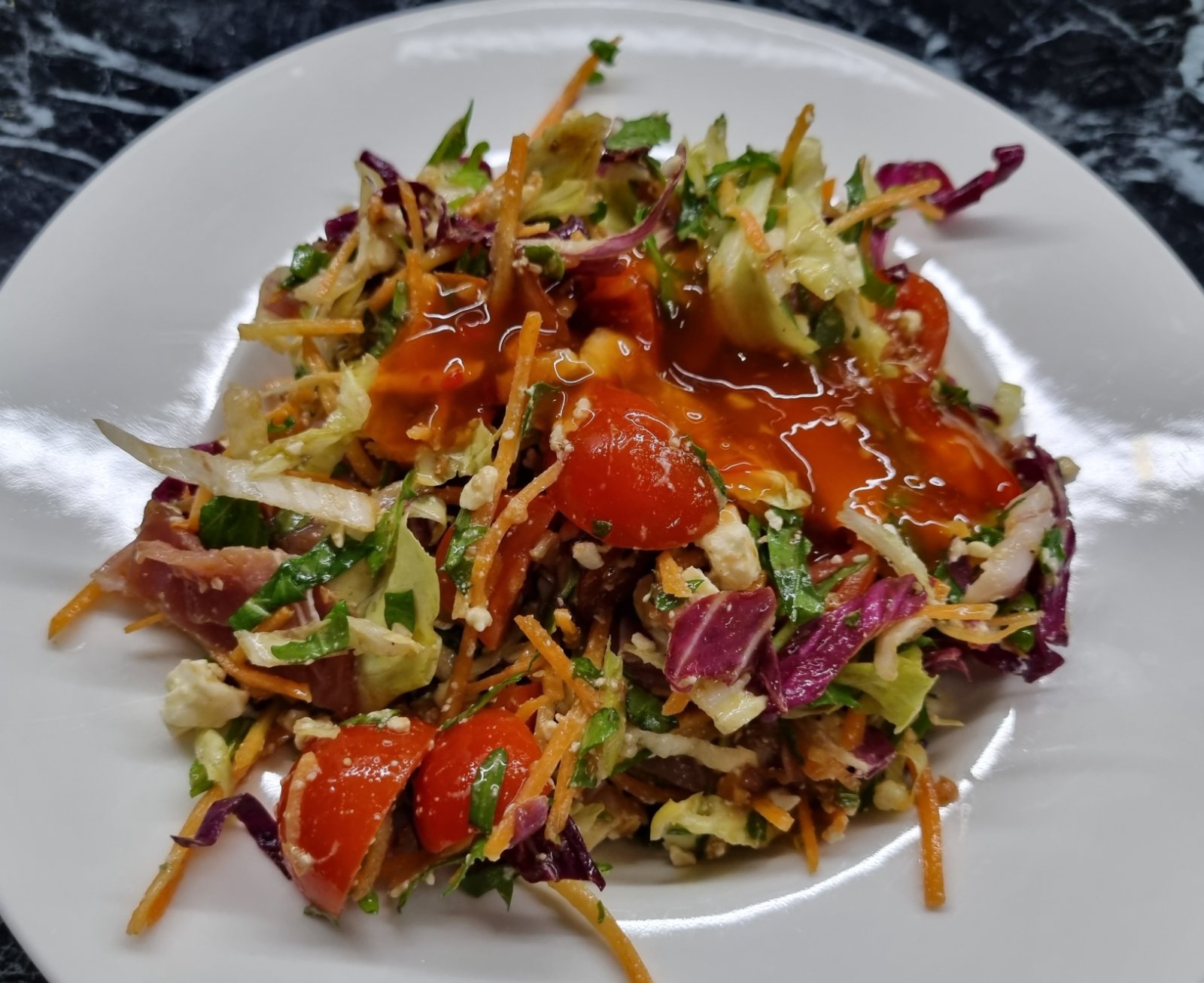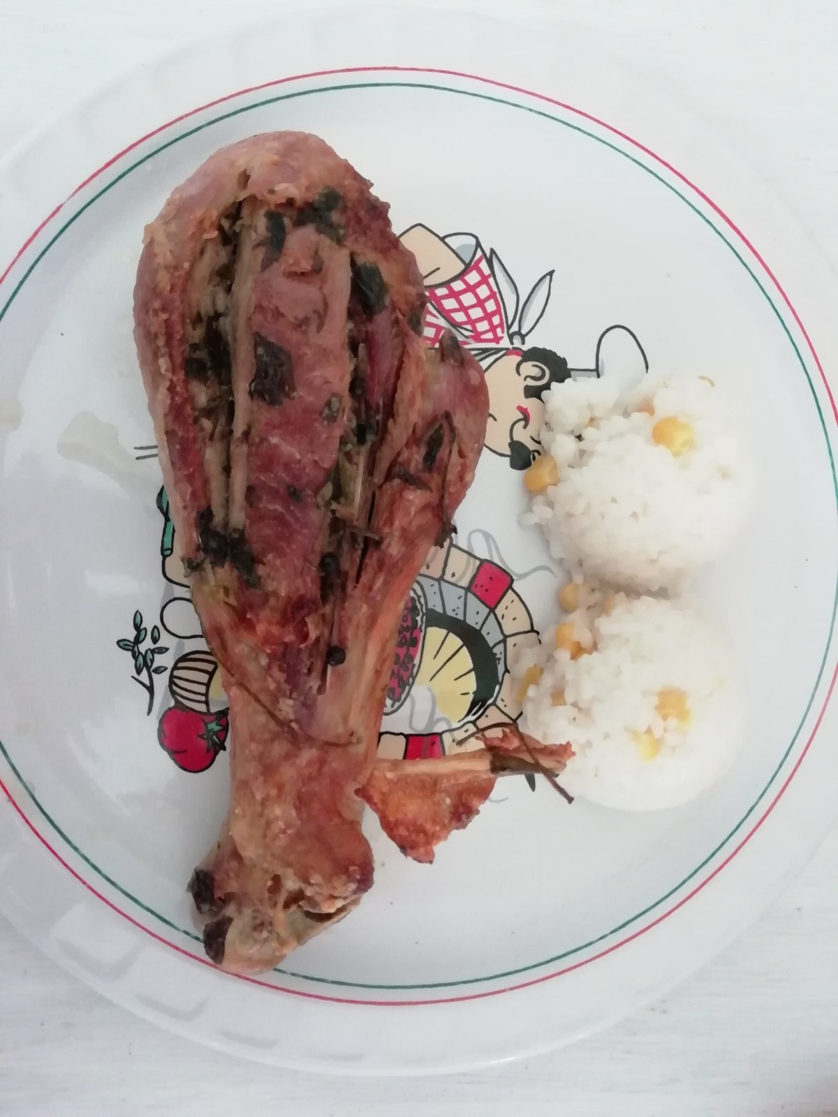 @ozi morčacie stehno, červená ruža fazuľové struky, vajce, kapary olivy rôzne korenie zmiešala upiekla na grile, na vrchu so syrom