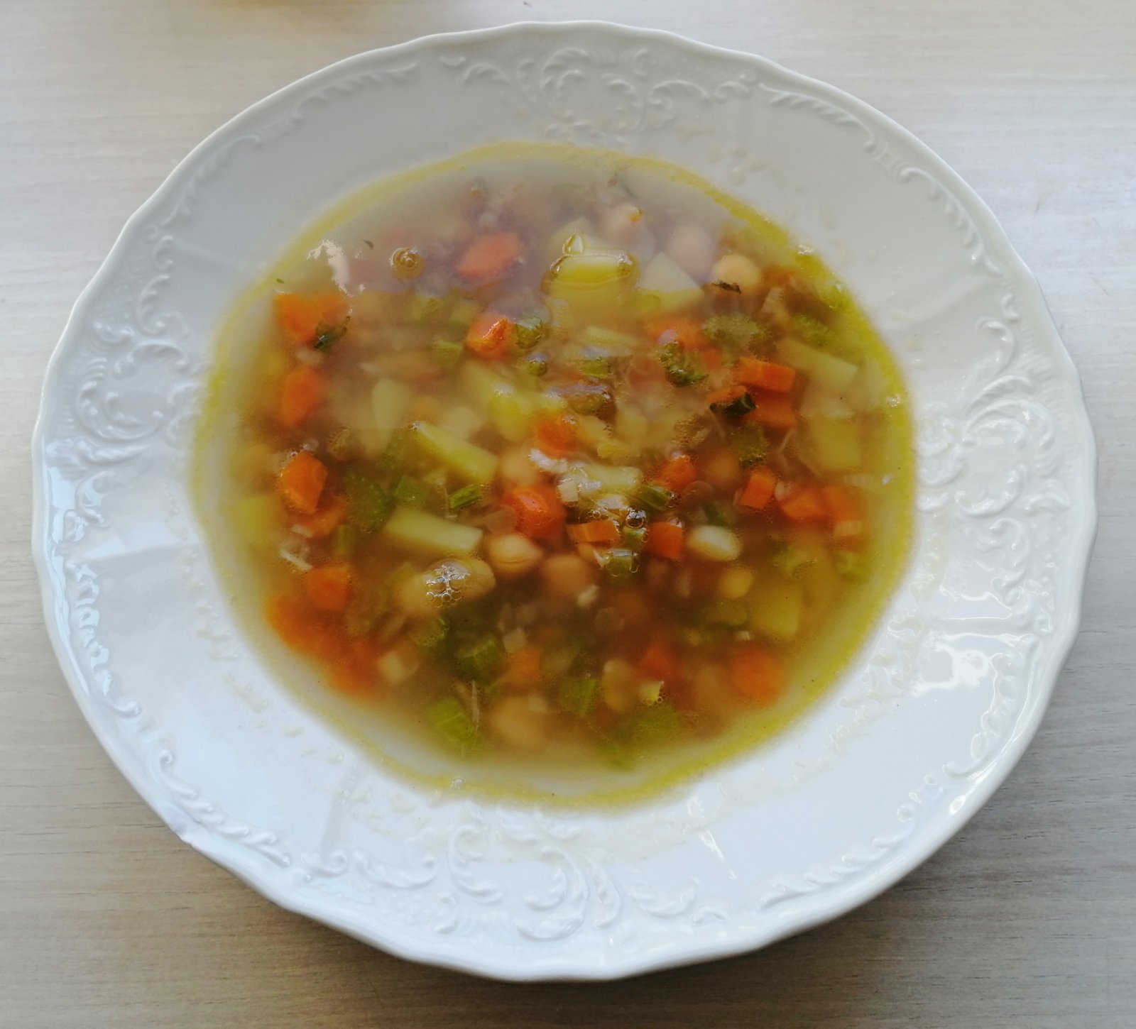 Vývar z kuriatka, diabolské rezne, opekané zemiaky a mrkvovo-jablkový šalát a zostala aj tarte cake zo včerajšej oslavy