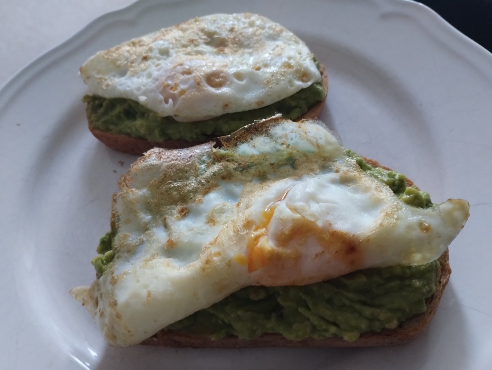Hrianky s avokádovou nátierkou a vajíčkom.