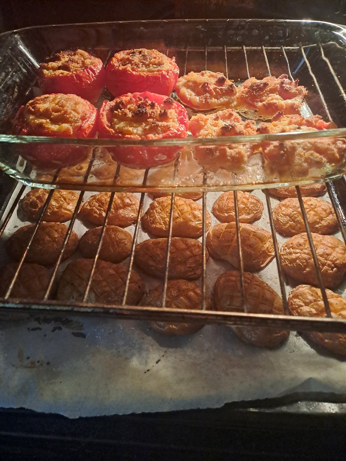 U nás vysmážaná cuketa, nové zemiaky a tatarka. Tak som sa na to tešila, že som nestihla odfotiť.