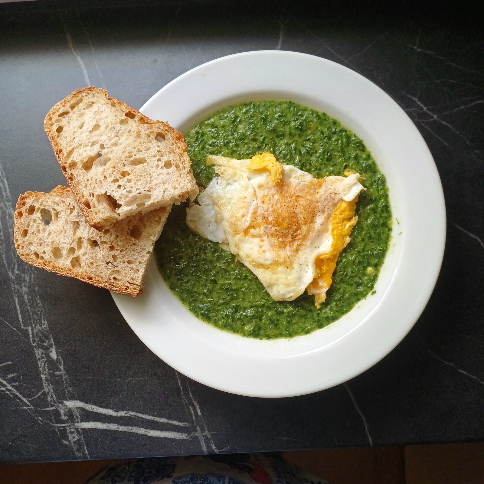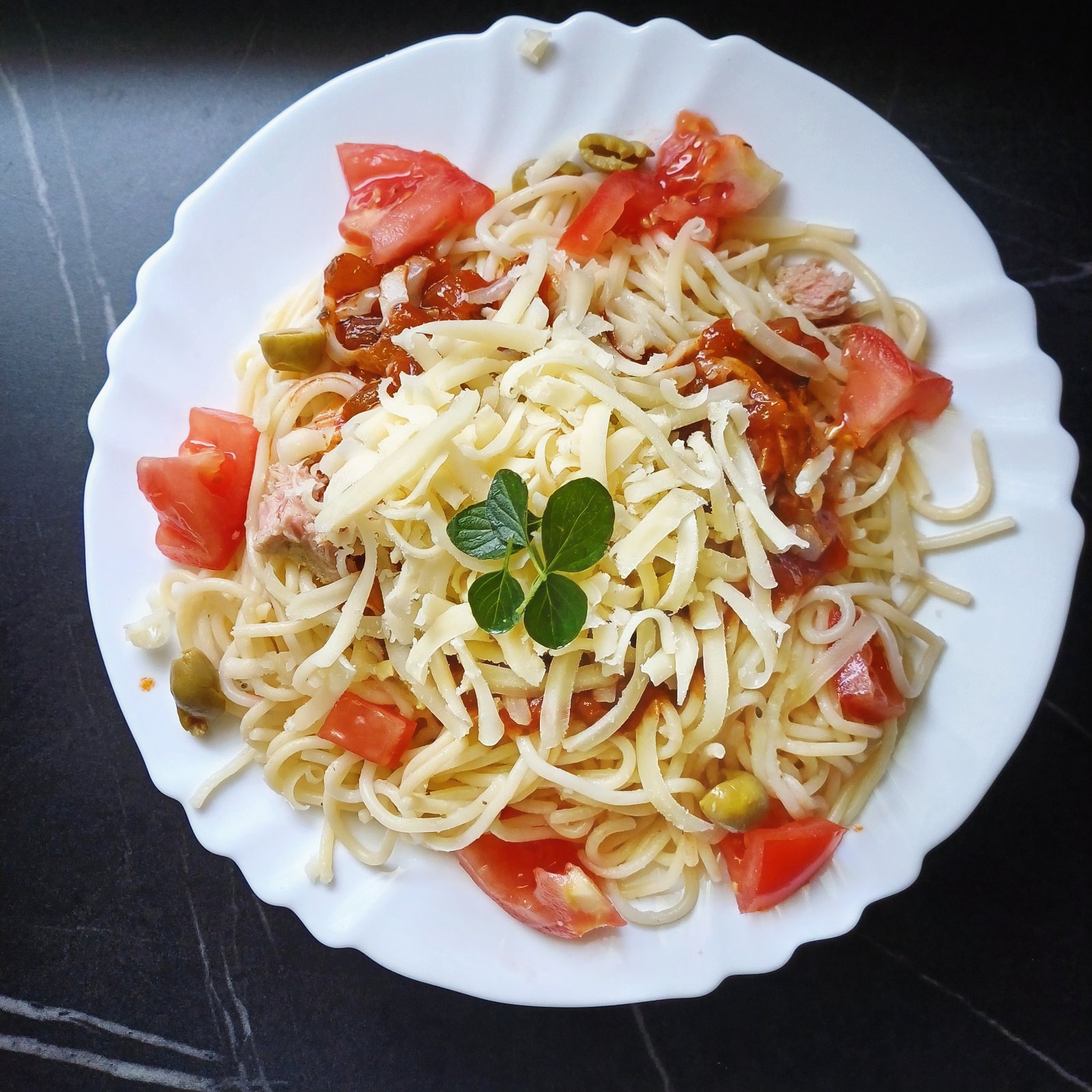 Včera a dnes, špenátový prívarok s vajíčkom a kváskovým chlebom, špagety s bolonskou omáčkou, tuniakom, olivami...