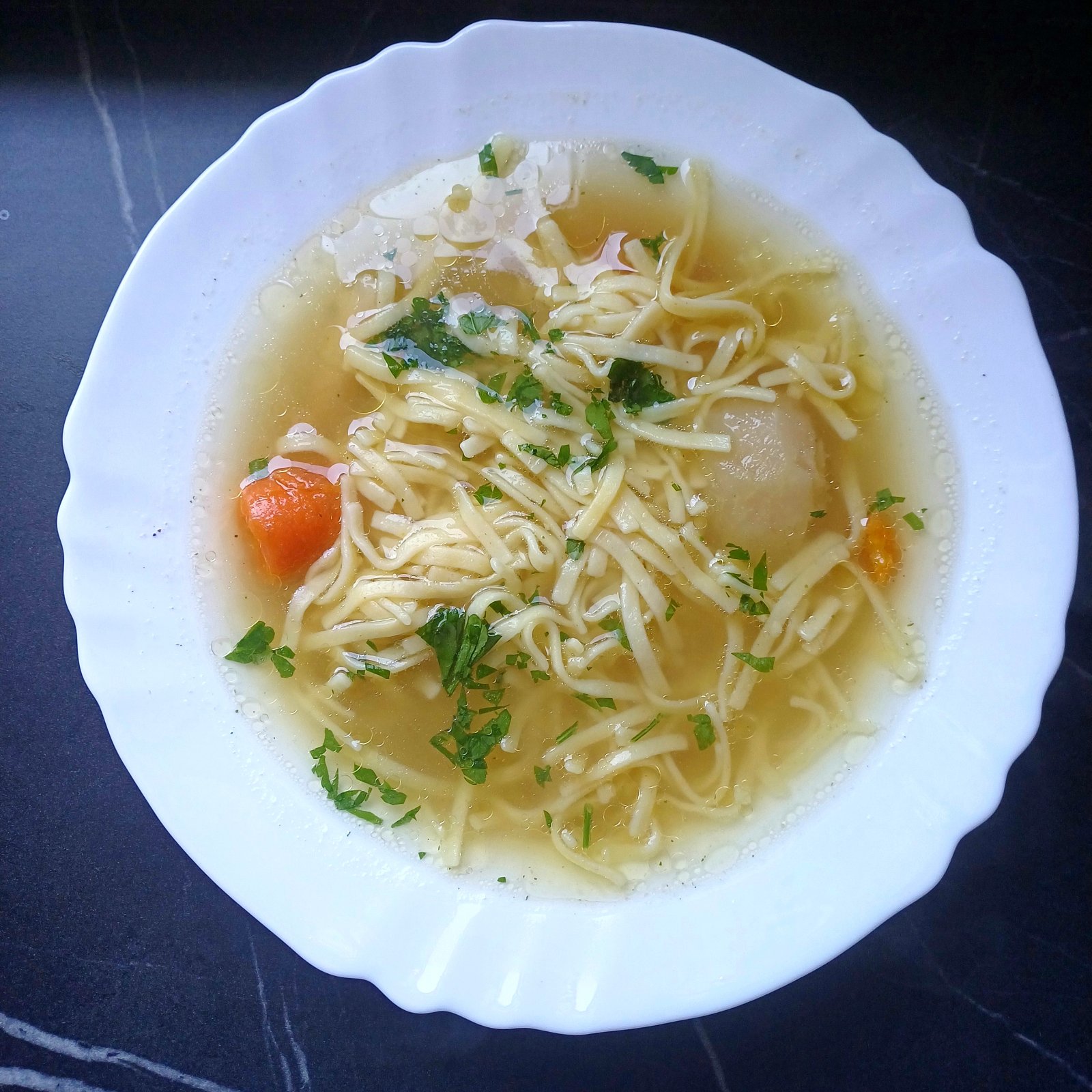 Slepačia polievka a kváskové palacinky s tvarohom.