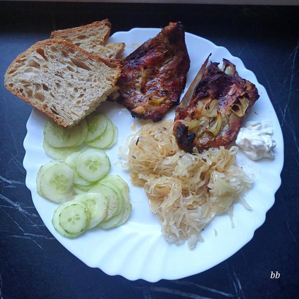 bravčová polievka s rezancami, buchty na pare so slivkovým domácim lekvárom, posypané makom a mandľami a poliate roztopeným maslom