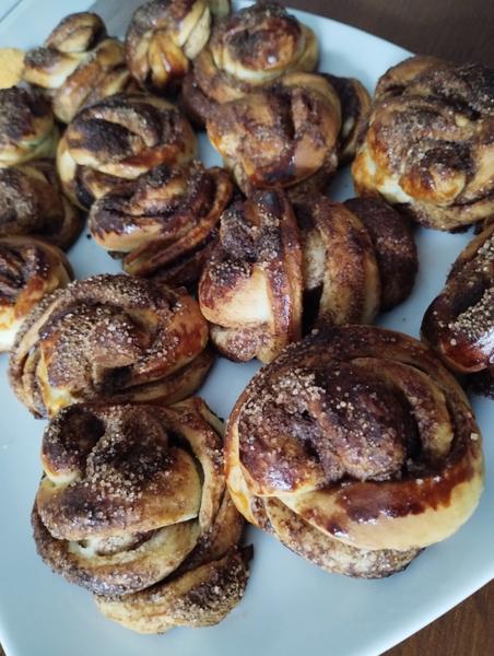 Rezne marinované v kyslej smotane, ryža, miešaný šalát. Švédske škoricove uzliky ku káve.