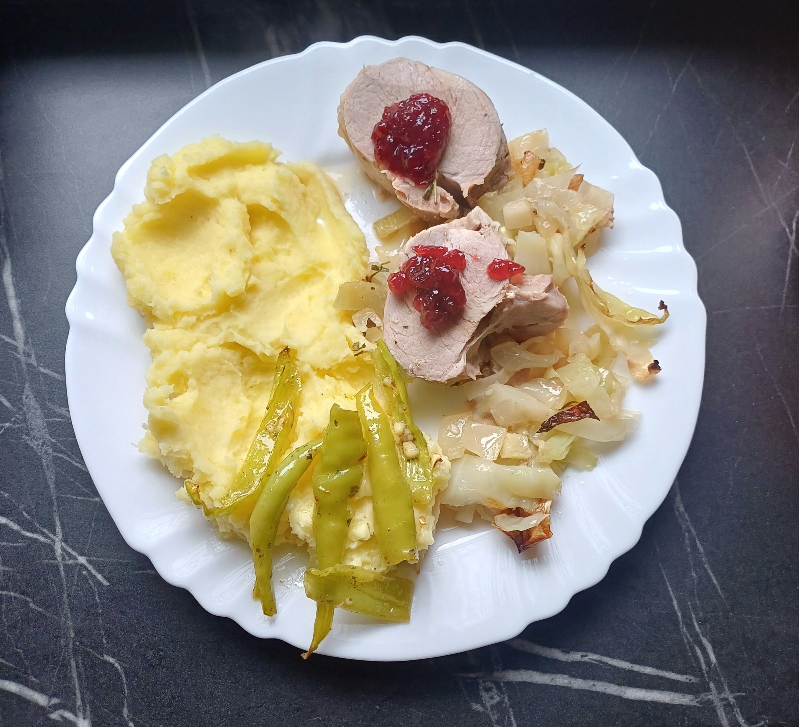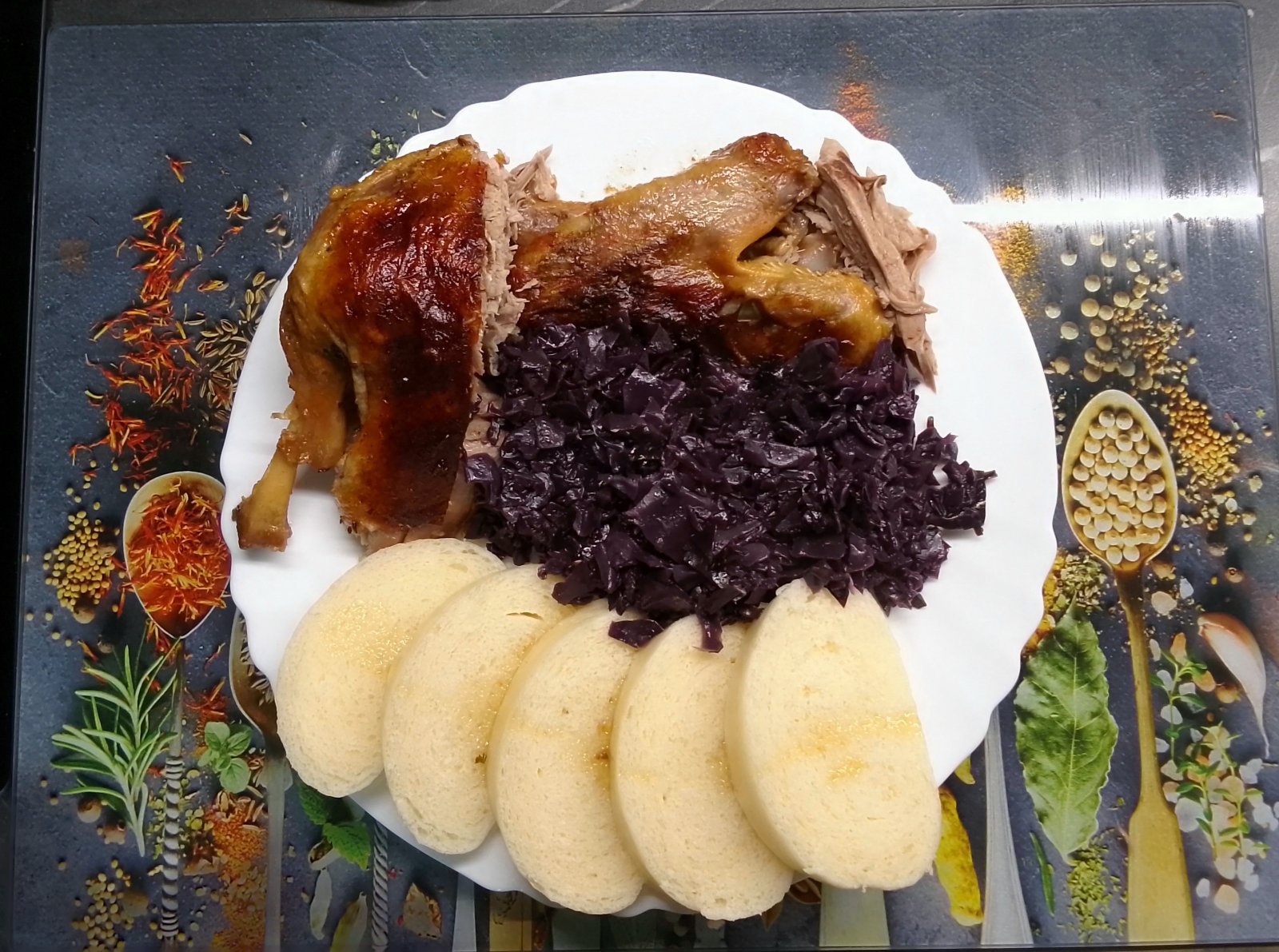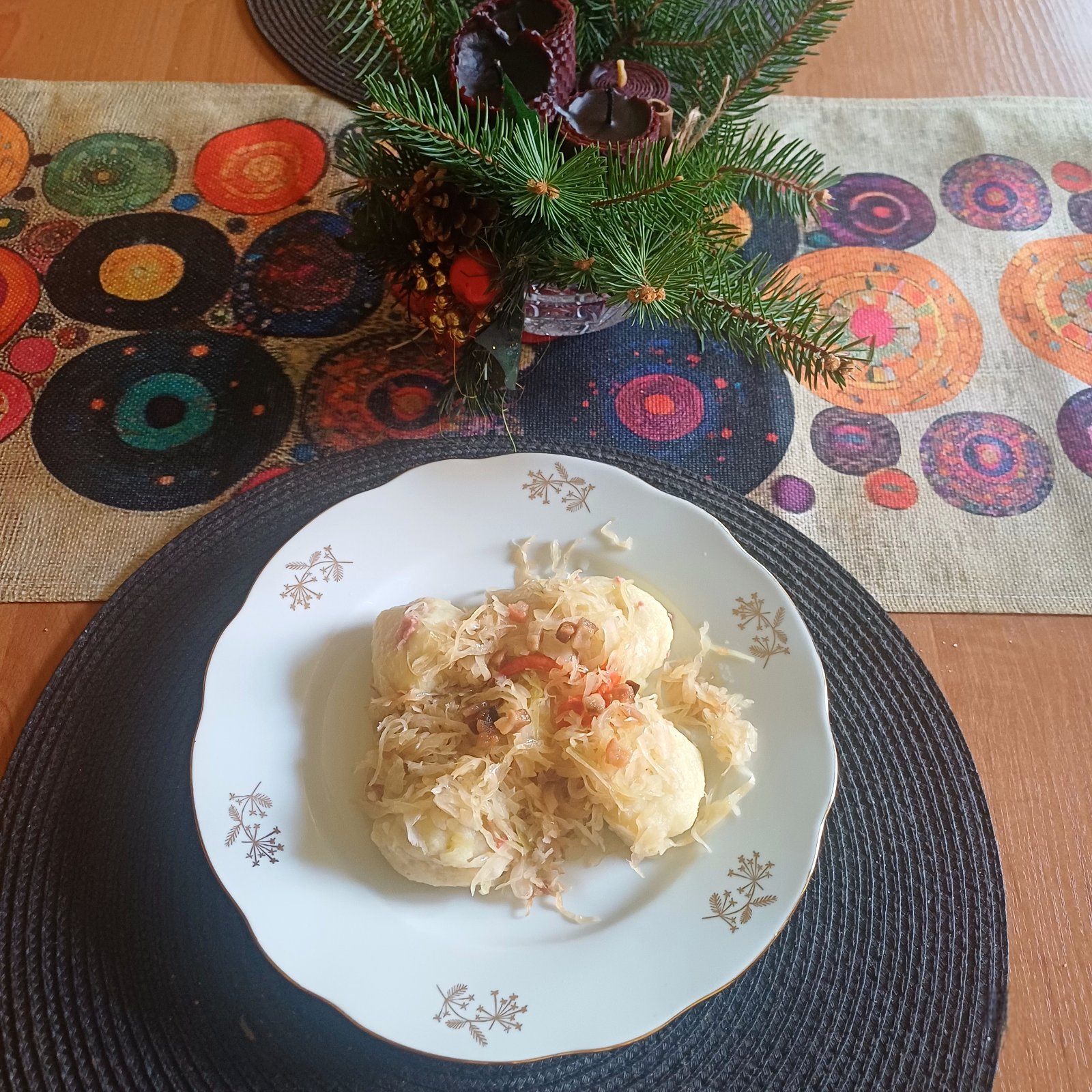 Včera koložvárska kapusta, varené zemiaky. Dnes zemiaková kyslá polievka, bratislavské pliecko, knedľa.