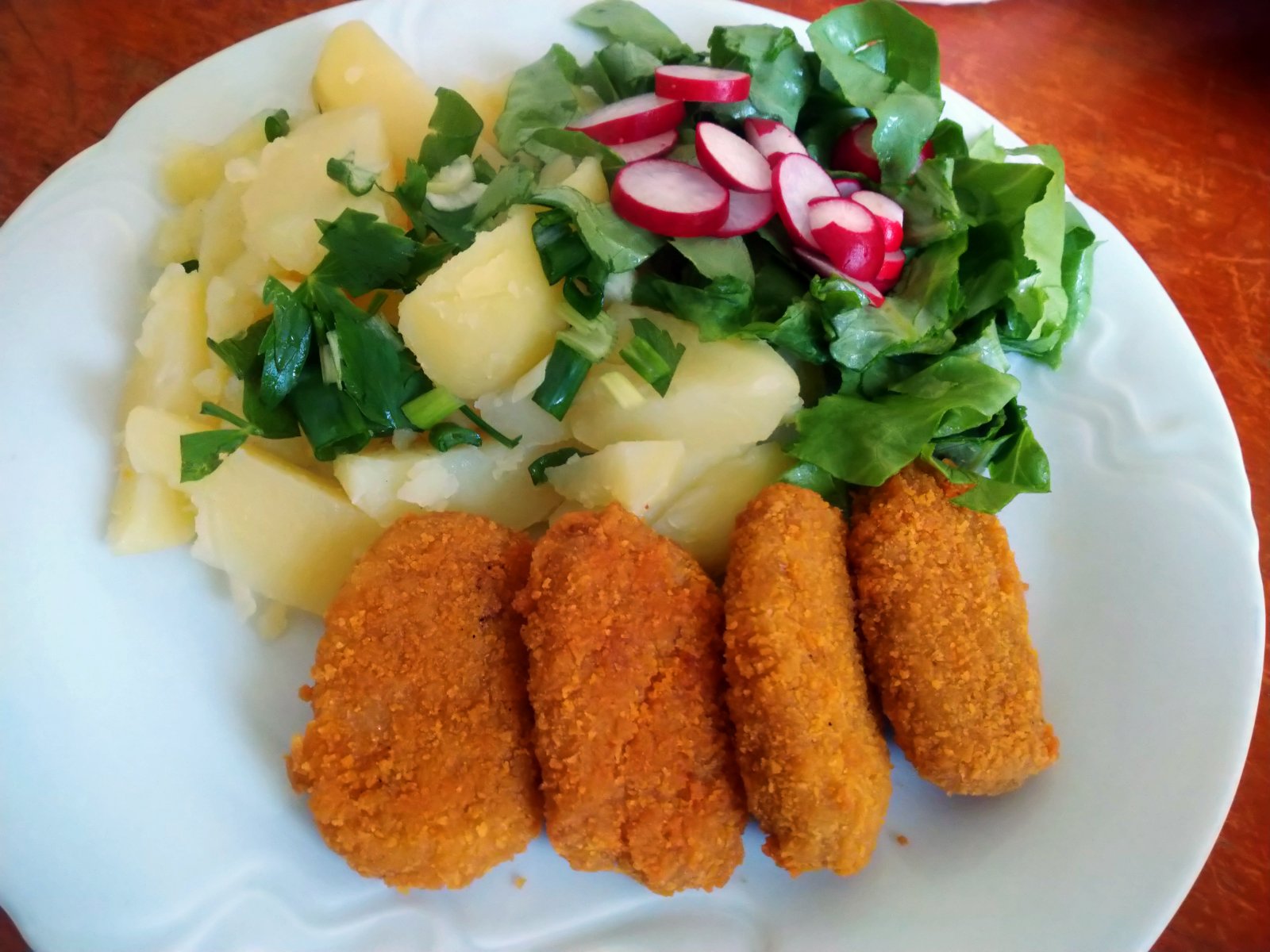 Včera koložvárska kapusta, varené zemiaky. Dnes zemiaková kyslá polievka, bratislavské pliecko, knedľa.